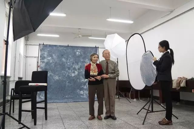 本次活動,團委邀請攝影團隊將攝影棚搬到離退休活動中心。志愿者們在專業攝影師和造型師的帶領下,為50名余名離退休老同志們化妝造型,拍攝個人肖像照及全家福合影并后期制作、打印裝裱,把精美的照片作為重陽節禮物送給前輩。